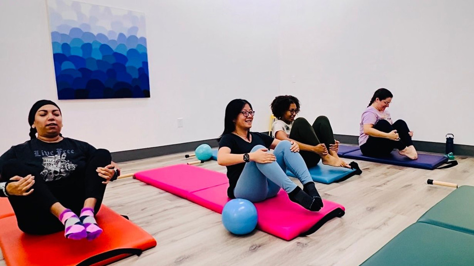 Mat Classes are small-group sessions focused on Pilates exercises performed on the mat, sometimes incorporating small props like bands, balls, and rings. These sessions have a maximum of 5 clients, allowing for personalized guidance while maintaining a group dynamic.